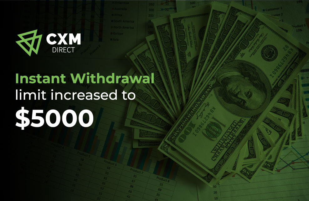 CXM Direct, a reliable broker, recently announced the increase of its Instant Withdrawal limit to $5000 per day. Instant Withdrawal, a feature that allows clients to withdraw funds instantly from their trading accounts, was previously limited to $1000. The limit has now changed. Clients can get their money with a higher limit of up to $5000 per day.